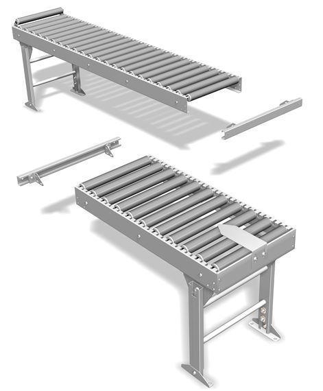 A görgős szállítópályák standard szélességben, műanyag görgővel rendelhetők.